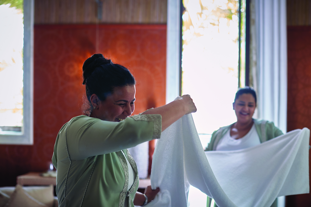 One crucial aspect for us was that the Royal Mansour focuses on looking after its staff and the planet. For example, 80% of the power comes from burning discarded olive stones collected from all over the country, while a vegetable garden provides seasonal produce and herbs for meals and treatments. An impressive 90% of the staff are Moroccan, and a hotel & catering school is being set up next door.